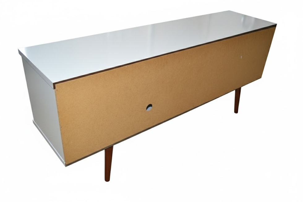 The Liberty Mid-Century Modern TV Stand is a high quality, beautifully crafted, functional unit. Featuring two open shelves, and one large concealed compartment perfect for stashing DVDs, board games, electronics, and media accessories, this entertainment centre is the ultimate gathering place and will create a statement in any space. Artful grooves mix well with any decor and splayed wooden legs add character and ease for moving.