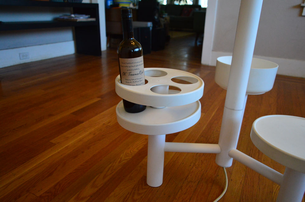 This rare floor lamp was produced in Holland in the 60s or 70s by a manufacturer called YPMA Bv. It not only serves as lighting, but can also serve as a side table for plants, bottles, glasses etc.